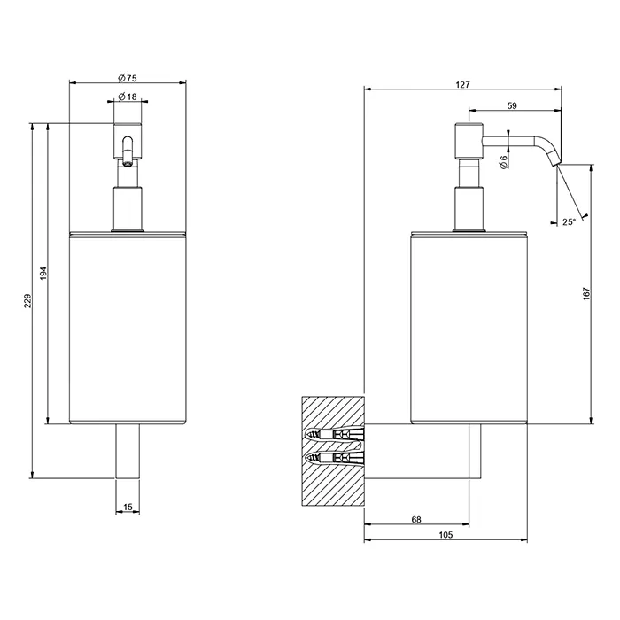 Дозатор для жидкого мыла настенный черное стекло ORIGINI 707 Black Metal Brushed PVD GESSI