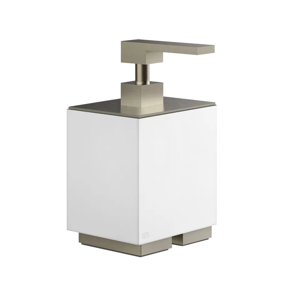 Дозатор для жидкого мыла настольный белое стекло RETTANGOLO 149 Finox Brushed Nickel GESSI