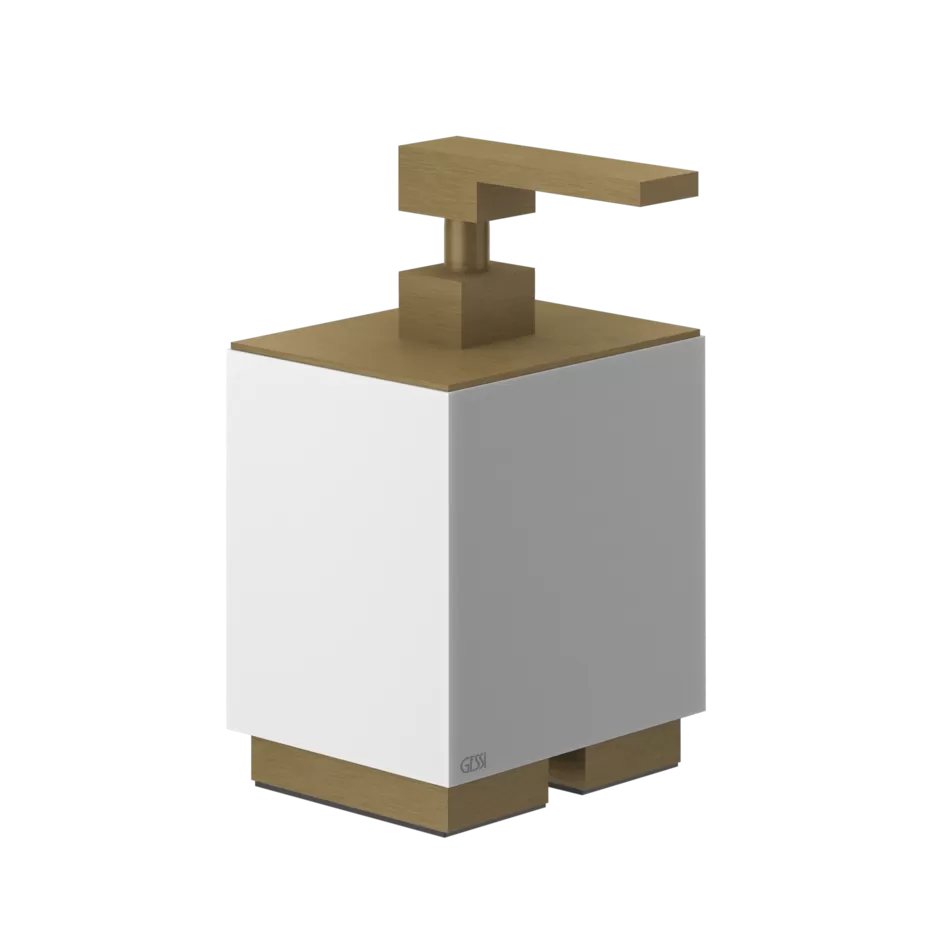 Дозатор для жидкого мыла настольный белое стекло RETTANGOLO 713 Antique Brass GESSI