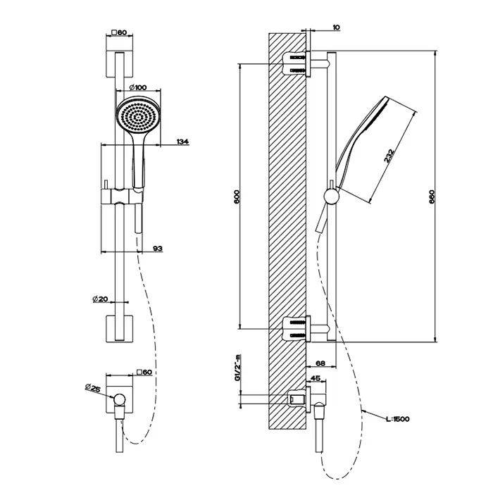 Gessi Emporio shower Штанга в комплекте с душевой лейкой, шланг 1,50 м и вывод воды, цвет: Finox Brushed Nickel