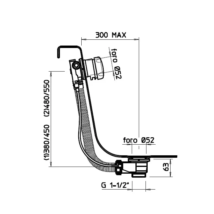 Слив-перелив для ванны полуавтоматический с наполнением длина 70см 031 Chrome GESSI