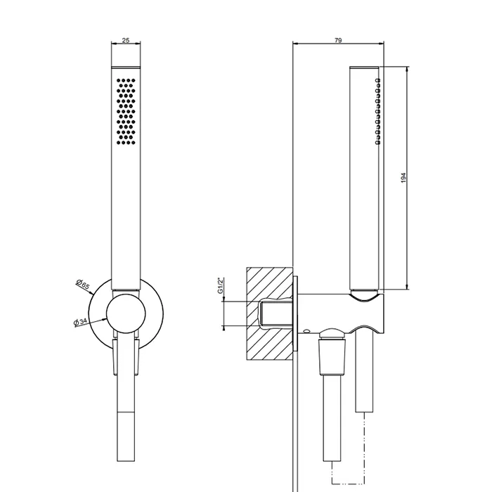 Душевой комплект, состоящий из вывода воды, держателя, шланга 1,50 м и лейки