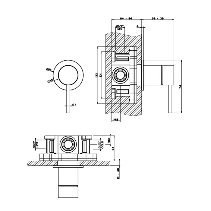 Смеситель для душа скрытого монтажа внешняя часть 1 поток FLESSA 727 Brushed Brass PVD GESSI