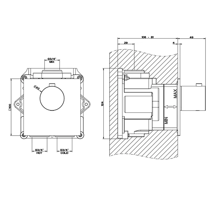 Смеситель для душа термостатический скрытого монтажа внешняя часть 1 поток GESSI316 239 Steel Brushed GESSI