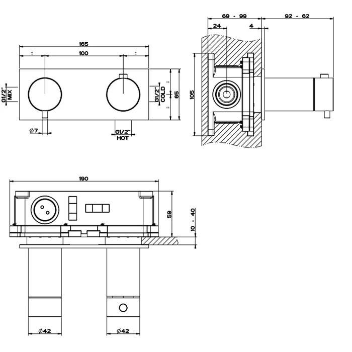 Смеситель для душа термостатический скрытого монтажа внешняя часть 1 поток GESSI316 239 Steel Brushed GESSI