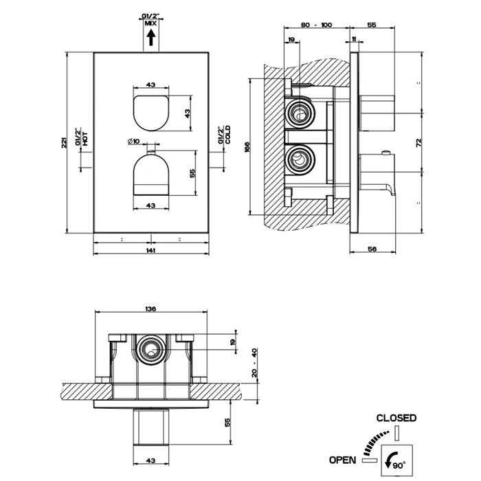 Смеситель для душа термостатический скрытого монтажа внешняя часть 1 поток RILIEVO 031 Chrome GESSI