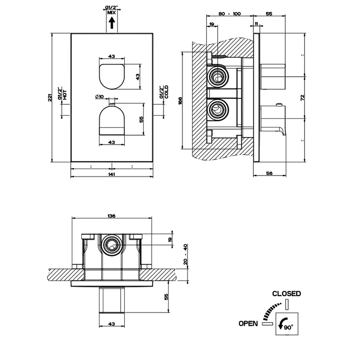 Смеситель для душа термостатический скрытого монтажа внешняя часть 1 поток RILIEVO 299 Black XL GESSI
