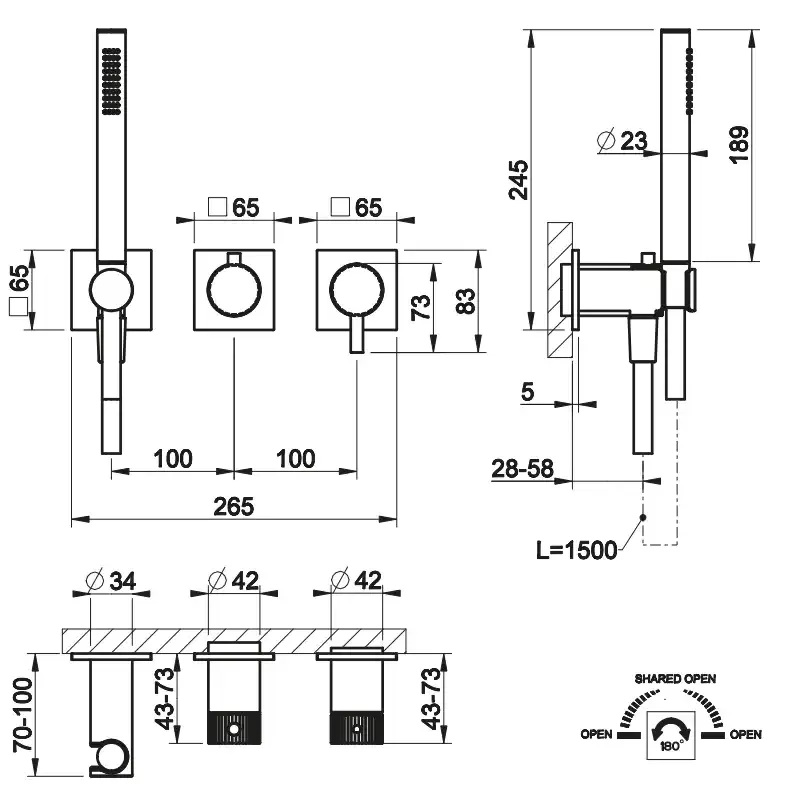Смеситель для ванны/душа скрытого монтажа с душ набором на 2 потока GESSI INCASTRI 706 Black Metal PVD