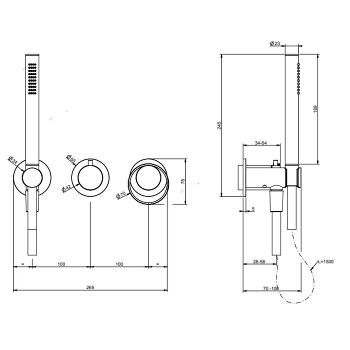 Смеситель для ванны/душа скрытого монтажа с душевым набором внешняя часть 2 потока ANELLO 299 Black XL GESSI