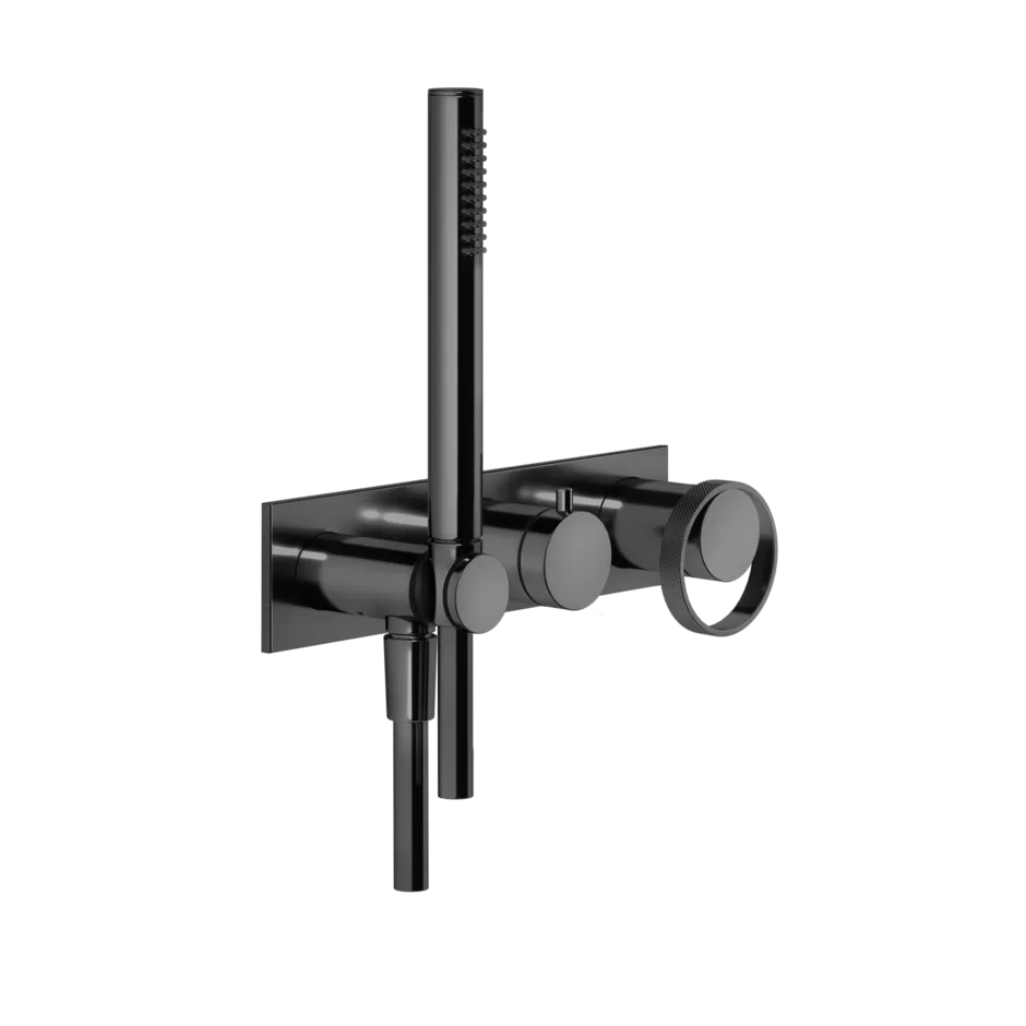 Смеситель для ванны/душа скрытого монтажа с душевым набором внешняя часть 2 потока ANELLO 706 Black Metal PVD GESSI