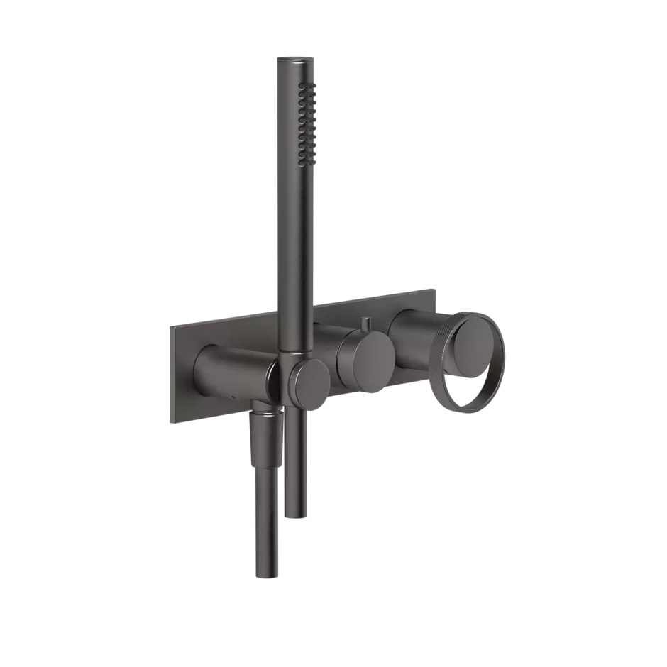 Смеситель для ванны/душа скрытого монтажа с душевым набором внешняя часть 2 потока ANELLO 707 Black Metal Brushed PVD GESSI
