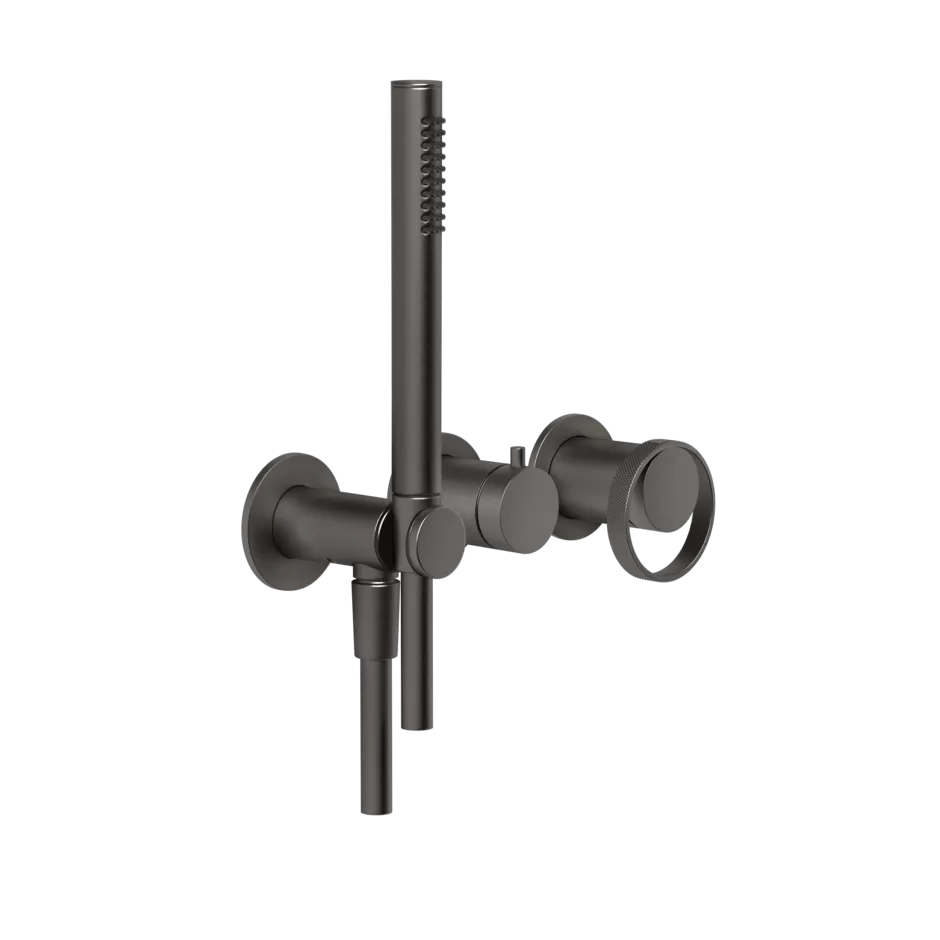 Смеситель для ванны/душа скрытого монтажа с душевым набором внешняя часть 2 потока ANELLO 707 Black Metal Brushed PVD GESSI