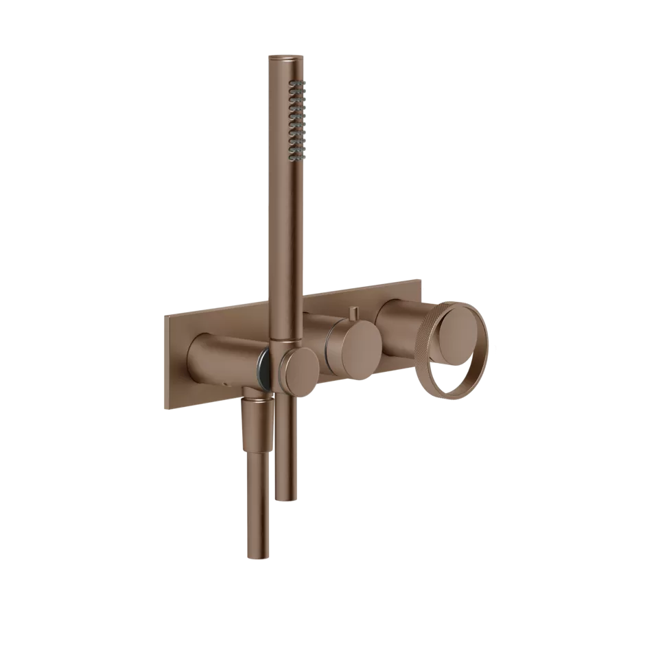 Смеситель для ванны/душа скрытого монтажа с душевым набором внешняя часть 2 потока ANELLO 708 Copper Brushed PVD GESSI