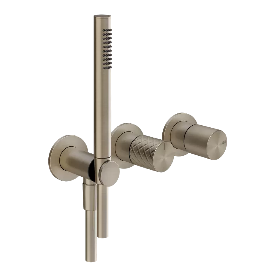 Смеситель для ванны/душа скрытого монтажа с душевым набором внешняя часть 2 потока HABITO INTRECCIO 735 Warm Bronze PVD GESSI