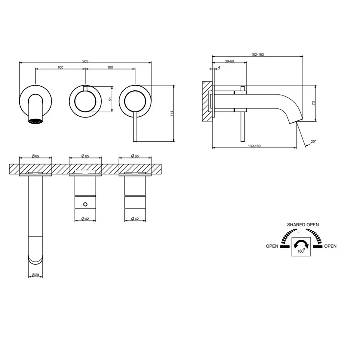 Смеситель для ванны/душа скрытого монтажа с изливом внешняя часть 2 потока GESSI316 239 Steel Brushed GESSI