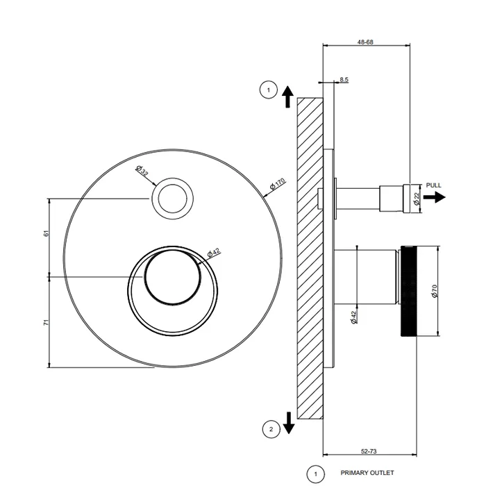 Смеситель для ванны/душа скрытого монтажа внешняя часть 2 потока ANELLO 707 Black Metal Brushed PVD GESSI