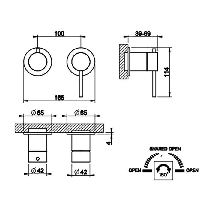 Смеситель для ванны/душа скрытого монтажа внешняя часть 2 потока GESSI316 299 Black XL GESSI