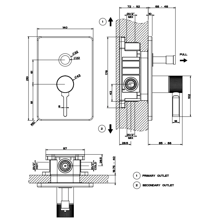 Смеситель для ванны/душа скрытого монтажа внешняя часть 2 потока INCISO 031 Chrome GESSI