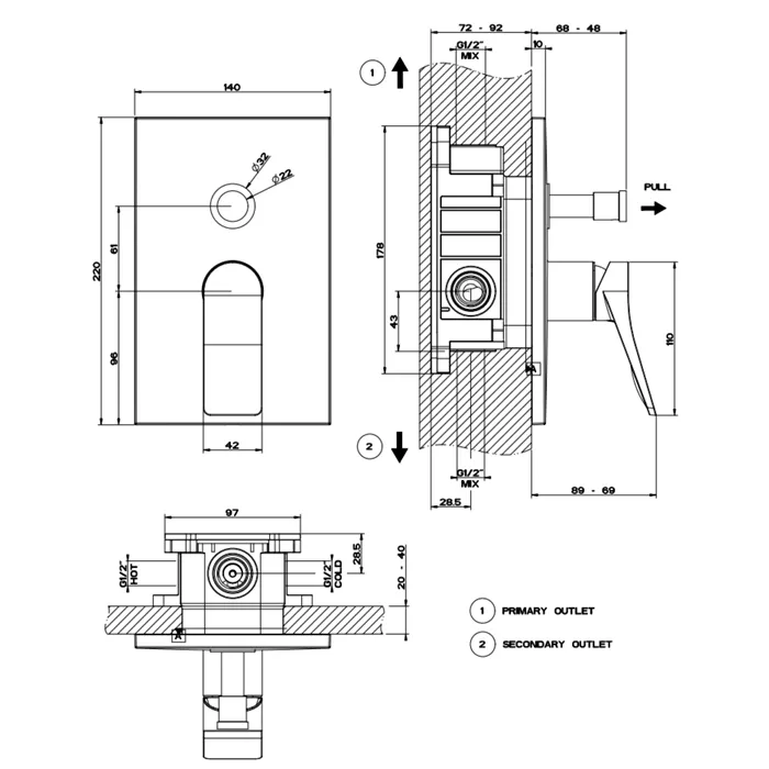 Смеситель для ванны/душа скрытого монтажа внешняя часть 2 потока RILIEVO 031 Chrome GESSI