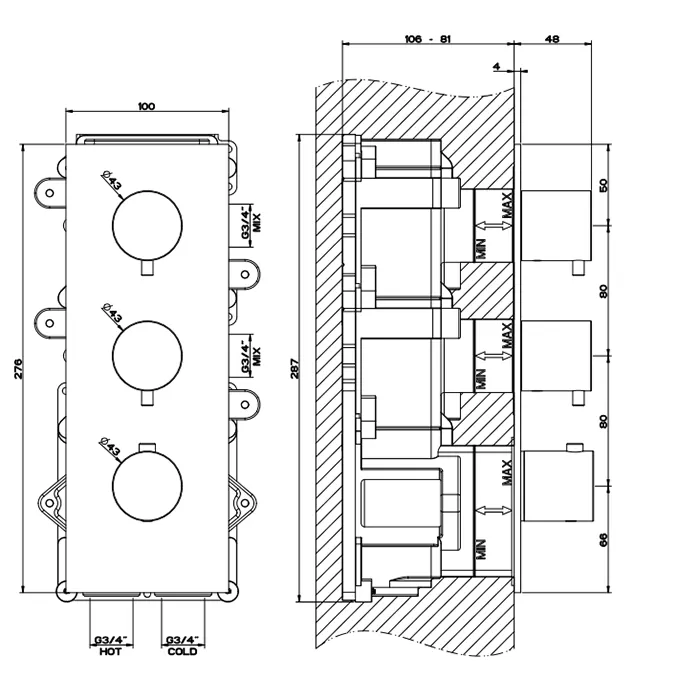 Смеситель для ванны/душа термостатический скрытого монтажа внешняя часть 2 потока GESSI316 707 Black Metal Brushed PVD GESSI