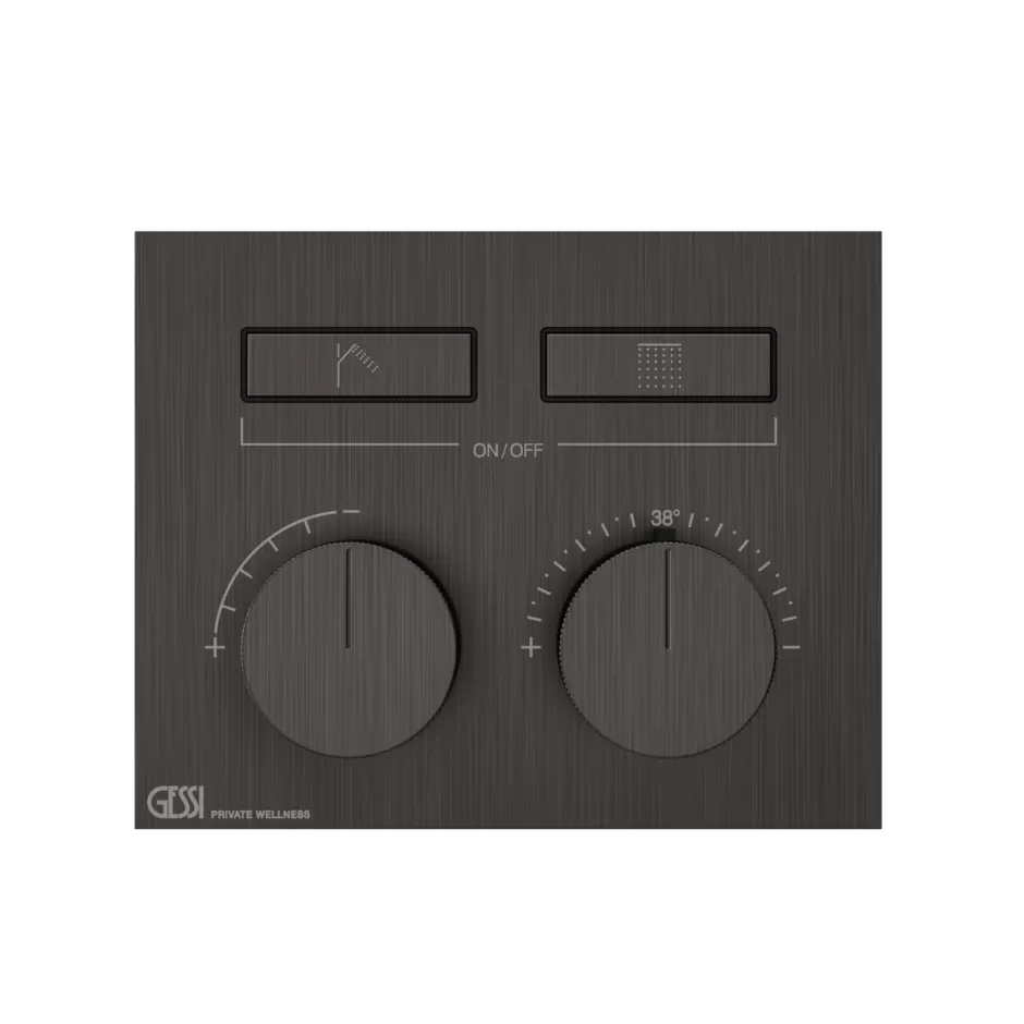 Смеситель для ванны/душа термостатический скрытого монтажа внешняя часть 2 потока HI-FI COMPACT 707 Black Metal Brushed PVD GESSI