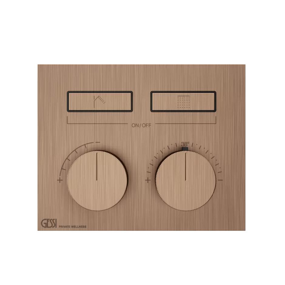 Смеситель для ванны/душа термостатический скрытого монтажа внешняя часть 2 потока HI-FI COMPACT 708 Copper Brushed PVD GESSI
