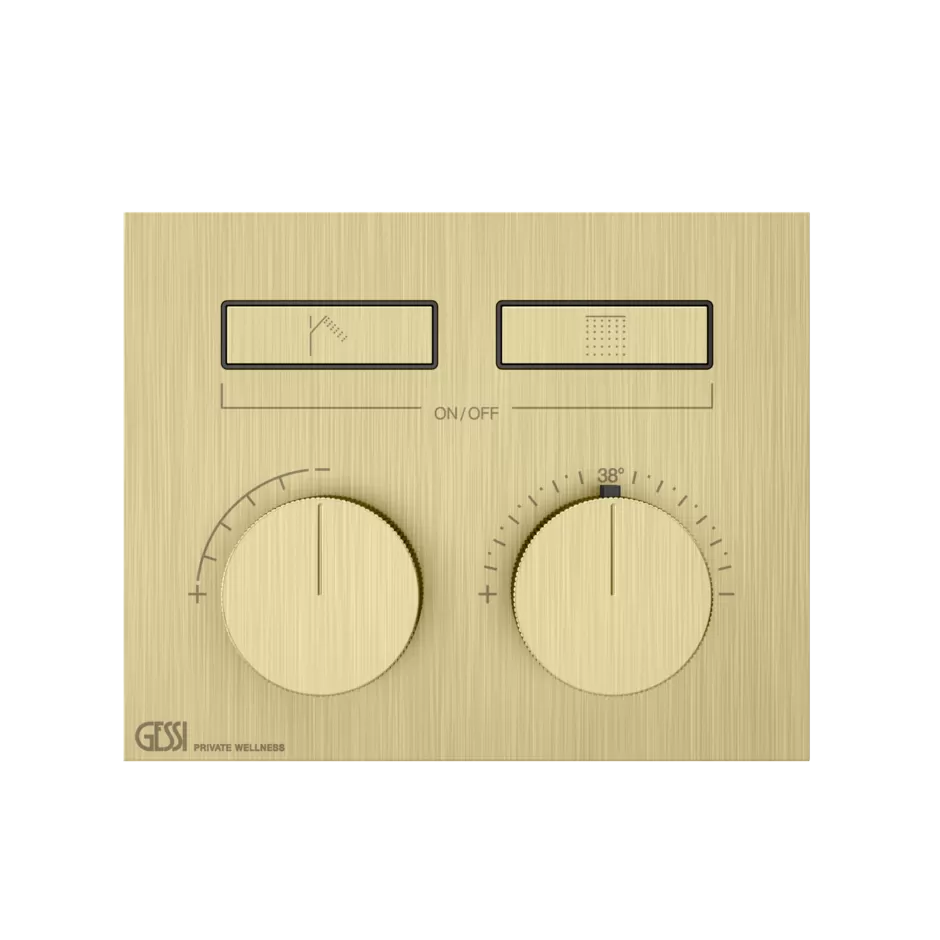 Смеситель для ванны/душа термостатический скрытого монтажа внешняя часть 2 потока HI-FI COMPACT 727 Brushed Brass PVD GESSI