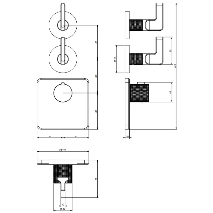 Смеситель для ванны/душа термостатический скрытого монтажа внешняя часть 2 потока INCISO 031 Chrome GESSI
