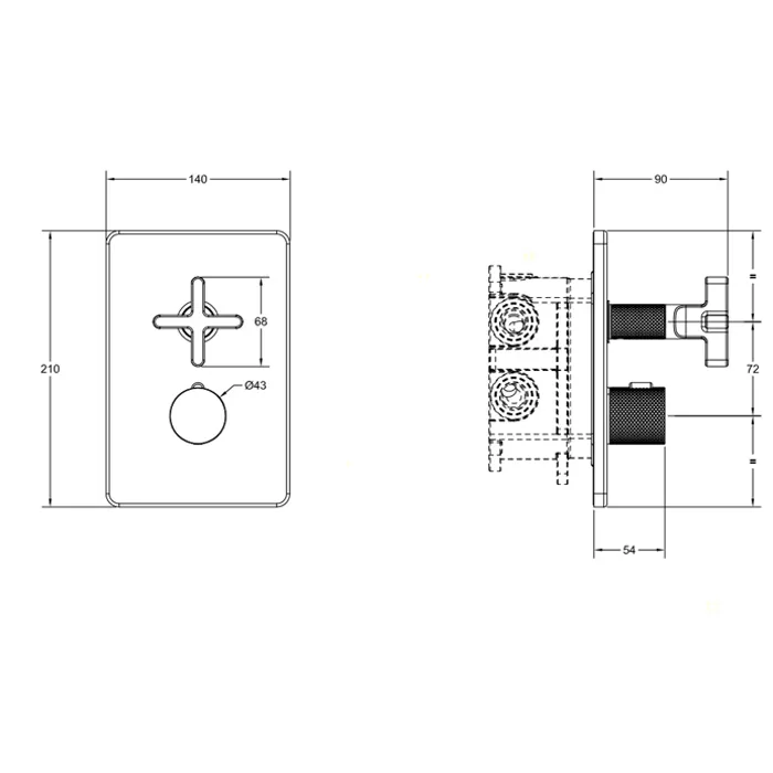 Смеситель для ванны/душа термостатический скрытого монтажа внешняя часть 2 потока INCISO 149 Finox Brushed Nickel GESSI