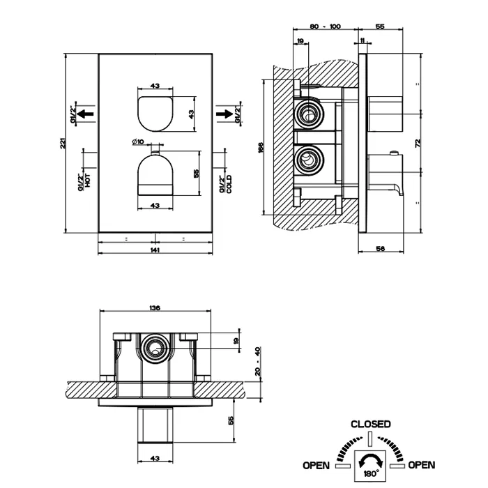 Смеситель для ванны/душа термостатический скрытого монтажа внешняя часть 2 потока RILIEVO 299 Black XL GESSI