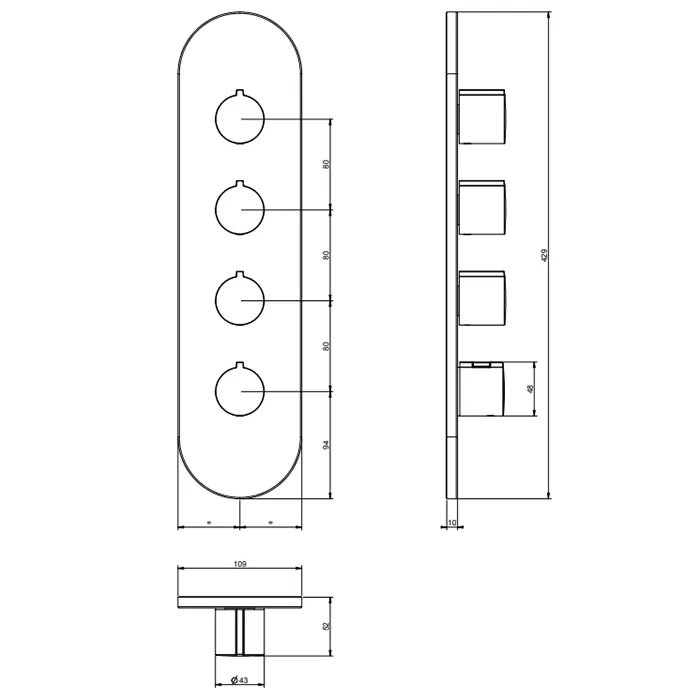 Смеситель для ванны/душа термостатический скрытого монтажа внешняя часть 3 потока ANELLO 031 Chrome GESSI