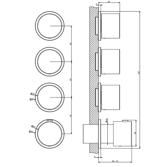 Смеситель для ванны/душа термостатический скрытого монтажа внешняя часть 3 потока ANELLO 031 Chrome GESSI