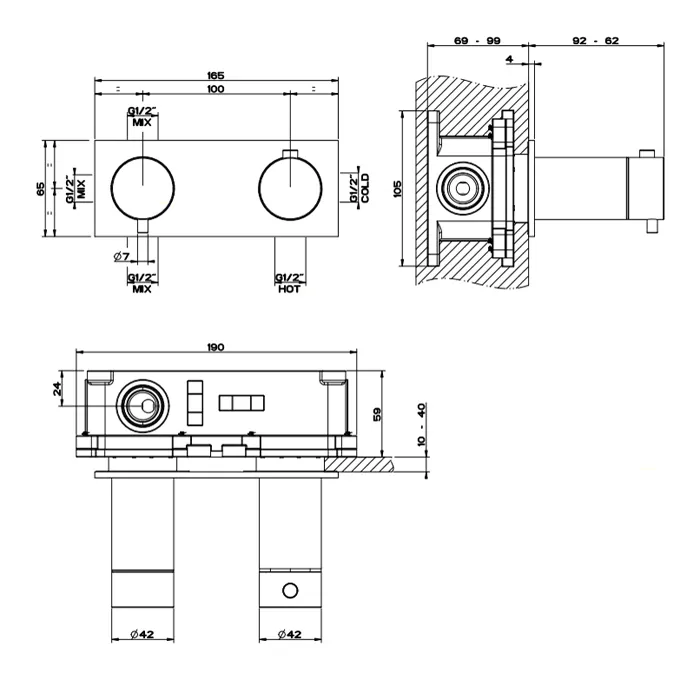 Смеситель для ванны/душа термостатический скрытого монтажа внешняя часть 3 потока GESSI316 239 Steel Brushed GESSI