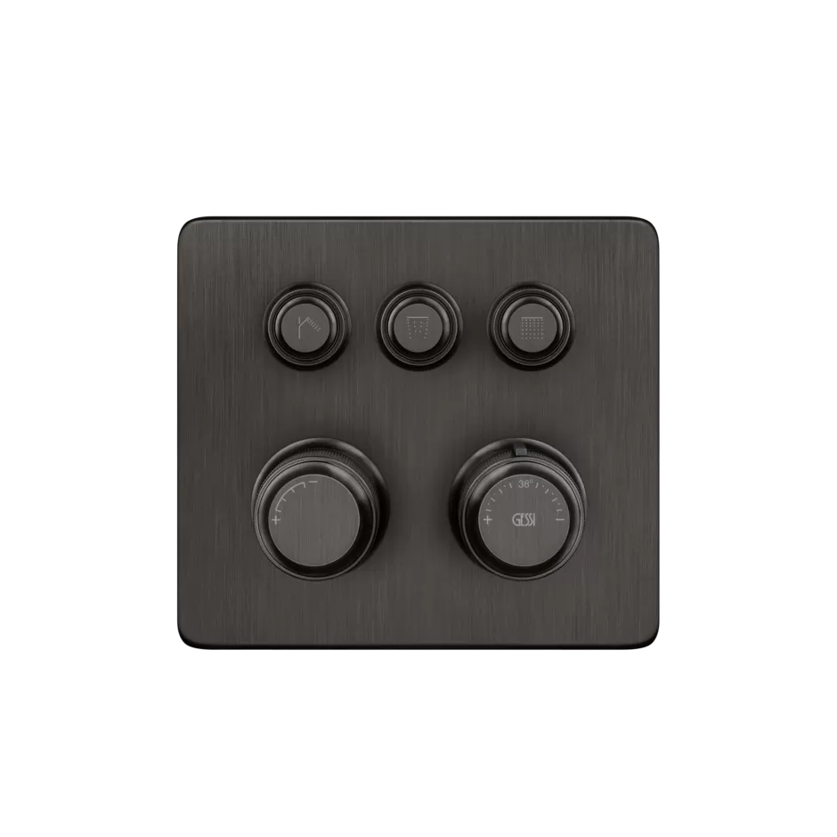 Смеситель для ванны/душа термостатический скрытого монтажа внешняя часть 3 потока HI-FI ECLECTIC 707 Black Metal Brushed PVD GESSI