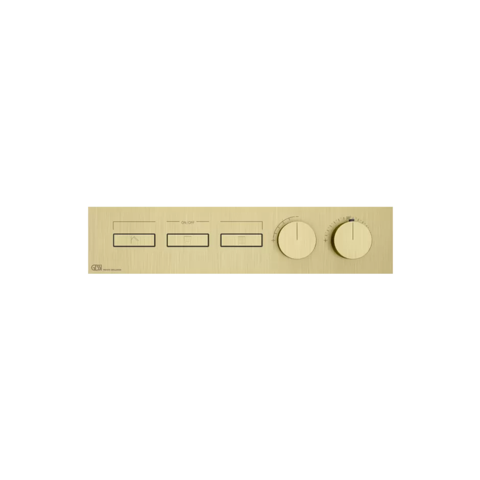 Смеситель для ванны/душа термостатический скрытого монтажа внешняя часть 3 потока HI-FI LINEAR 727 Brushed Brass PVD GESSI