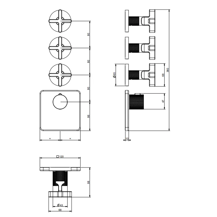 Смеситель для ванны/душа термостатический скрытого монтажа внешняя часть 3 потока INCISO 246 Gold PVD GESSI
