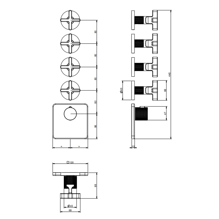Смеситель для ванны/душа термостатический скрытого монтажа внешняя часть 4 потока INCISO 031 Chrome GESSI