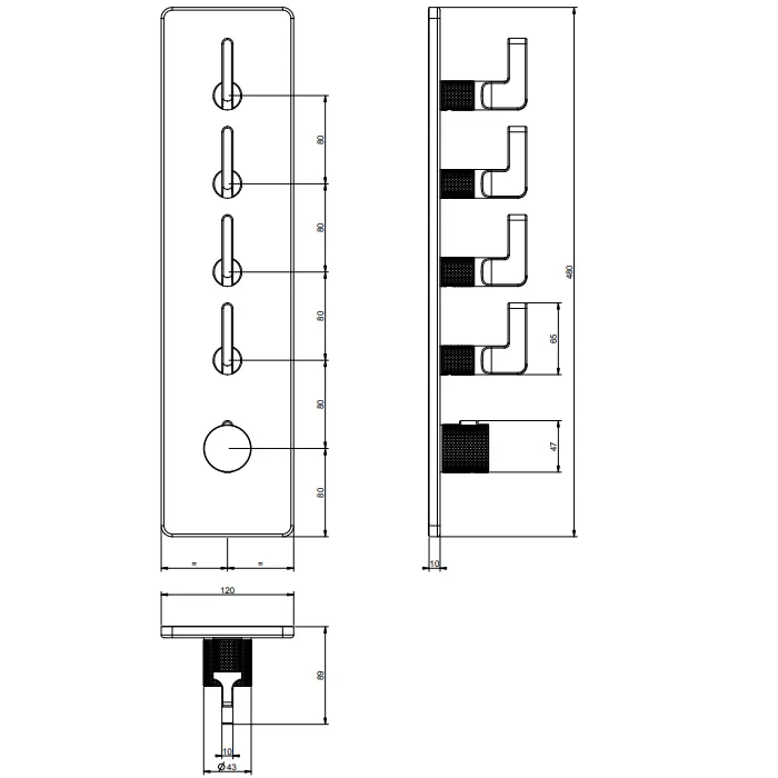 Смеситель для ванны/душа термостатический скрытого монтажа внешняя часть 4 потока INCISO 031 Chrome GESSI
