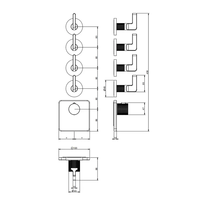 Смеситель для ванны/душа термостатический скрытого монтажа внешняя часть 4 потока INCISO 299 Black XL GESSI