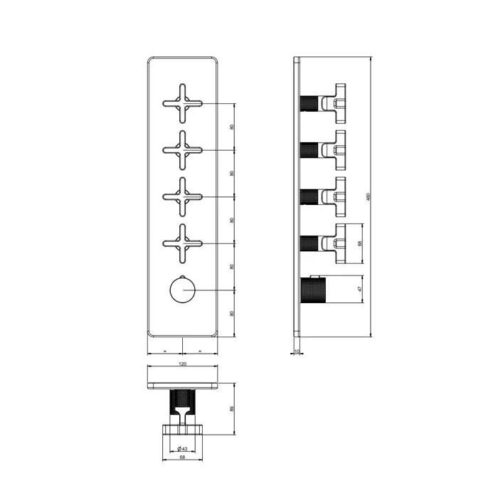 Смеситель для ванны/душа термостатический скрытого монтажа внешняя часть 4 потока INCISO 299 Black XL GESSI
