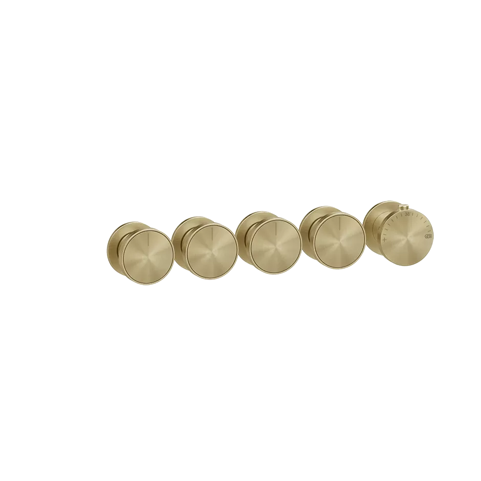 Смеситель для ванны/душа термостатический скрытого монтажа внешняя часть 4 потока вставка в комплекте, можно дополнительно комплектовать вставками арт.66600 или арт.66602 ORIGINI 727 Brushed Brass PVD GESSI