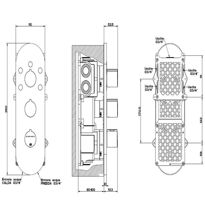 Смеситель для ванны/душа термостатический скрытого монтажа внешняя часть 5 потоков ANELLO 031 Chrome GESSI