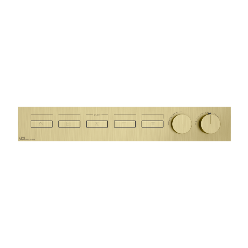 Смеситель для ванны/душа термостатический скрытого монтажа внешняя часть 5 потоков HI-FI LINEAR 727 Brushed Brass PVD GESSI
