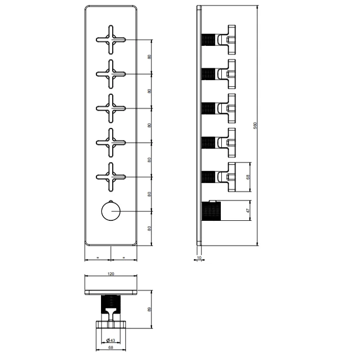 Смеситель для ванны/душа термостатический скрытого монтажа внешняя часть 5 потоков INCISO 031 Chrome GESSI