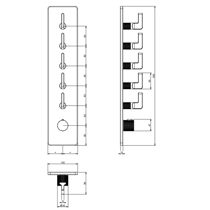 Смеситель для ванны/душа термостатический скрытого монтажа внешняя часть 5 потоков INCISO 299 Black XL GESSI