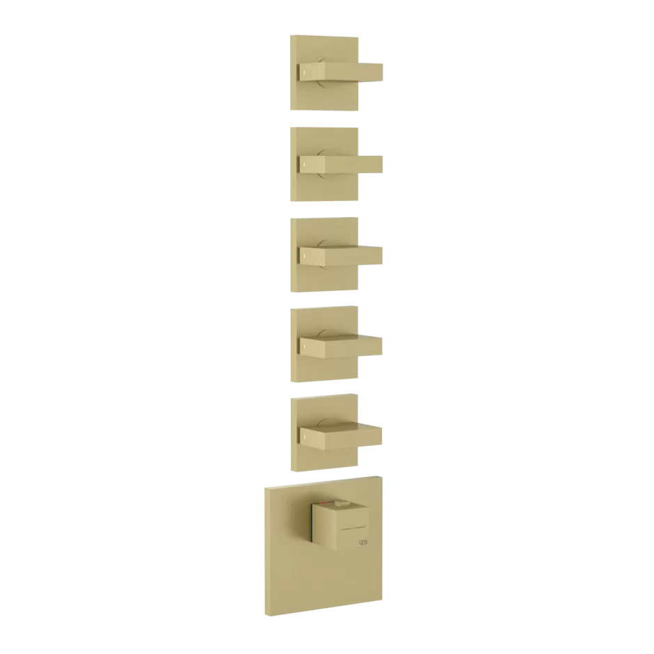 Смеситель для ванны/душа термостатический скрытого монтажа внешняя часть 5 потоков RETTANGOLO 727 Brushed Brass PVD GESSI