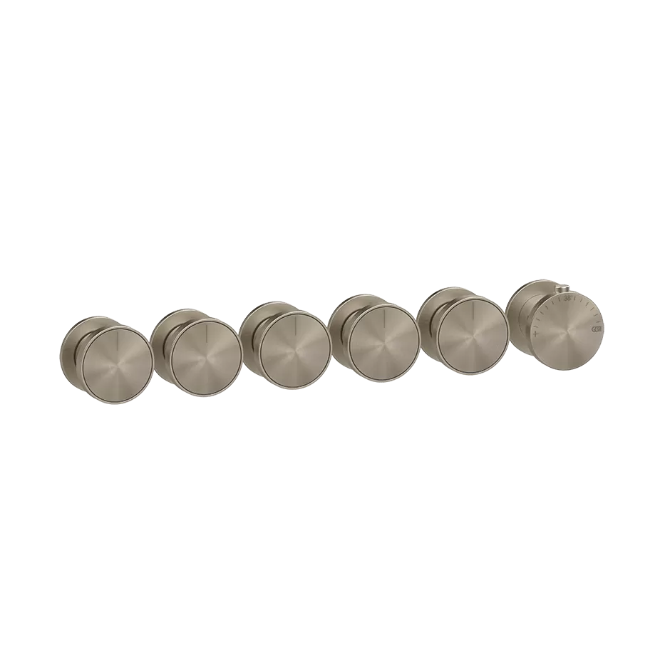 Смеситель для ванны/душа термостатический скрытого монтажа внешняя часть 5 потоков вставка в комплекте, можно дополнительно комплектовать вставками арт.66600 или арт.66602 ORIGINI 149 Finox Brushed Nickel GESSI