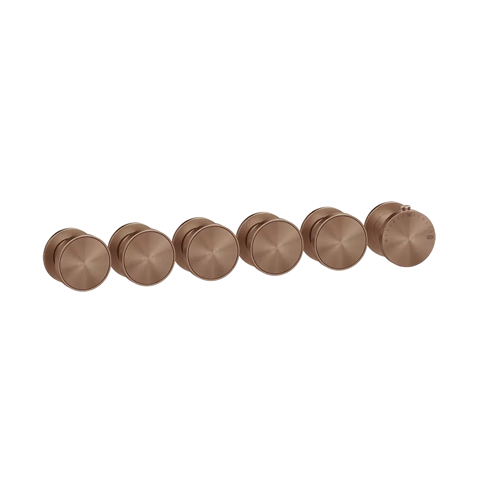 Смеситель для ванны/душа термостатический скрытого монтажа внешняя часть 5 потоков вставка в комплекте, можно дополнительно комплектовать вставками арт.66600 или арт.66602 ORIGINI 708 Copper Brushed PVD GESSI