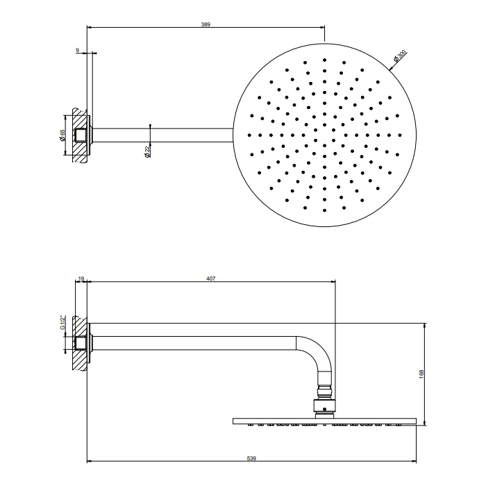 Верхний душ Ø301 настенный монтаж тропический ливень INCISO 031 Chrome GESSI