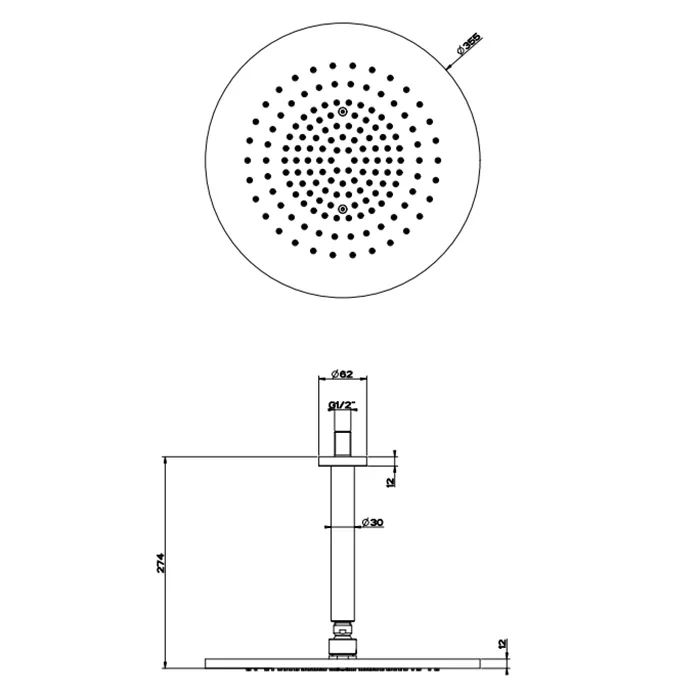 Верхний душ Ø355 потолочный монтаж тропический ливень GESSI316 707 Black Metal Brushed PVD GESSI